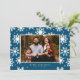Fotokarte mit großen weißen Schneeflocken und Platz für ein landschaftlich orientiertes Foto. Elegantes Design, geeignet für Urlaub und besonders Weihnachten