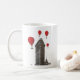Flacheisen-Gebäude und Rot-Heißluftballons Tasse