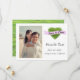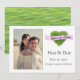 Vietnamesisches Grün- und Weißes Foto Save the Date mit Lavendelbanner und grünem Herz,