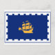 Postkarte mit der Flagge von Quebec City, der Hauptstadt Stadt Quebec, Kanada. Blaue Flagge mit weißer Kontur und gelbem Schiff in der Mitte