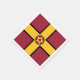 Papierserviette mit Design mit der Fahne des historischen Landkreises von Northamptonshire in England, Großbritannien; die Ringflagge mit Goldkreuz und die traditionelle Rose des Landkreises in der Mitte
