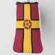 Golf Head Cover mit Design mit einer Fahne des historischen Landkreises von Northamptonshire in England, Großbritannien; Maronflagge mit Goldkreuz und die traditionelle Rose des Landkreises im Zentrum