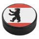 Hockeypuck mit Berliner Flagge, Staatsflagge mit horizontalen Streifen in Rot und Weiß, mit einer Abbildung eines schwarzen Bären in der Mitte