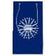 Papiertasche mit der Flagge der Stadt Buffalo, New York; Blaue Flagge mit weißem Siegel der Stadt und 13 Blitzschrauben