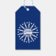 Preis-Tag mit der Fahne der Stadt Buffalo, New York; blaue Fahne mit weißem Siegel der Stadt und 13 Blitzschrauben
