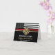 Dieses Design ist mit einer Feuerwehrflagge mit schwarz-weißen Streifen und einem dünnen roten Streifen versehen. "Glückwunsch" und das Abzeichen eines Feuerwehrmanns sitzen über dem Namen des geschlossen Feuerwehrmanns. Dieses Design eignet sich auch hervorragend für pensionierte Feuerwehrleute, Leutnants oder Häuptlinge. Feiern Sie stilvoll!