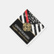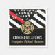 Diese Feuerwehrplatte ist mit einer Feuerwehrflagge mit schwarz-weißen Streifen und einem dünnen roten Streifen versehen. "Glückwunsch" und das Abzeichen eines Feuerwehrmanns sitzen über dem Namen des geschlossen Feuerwehrmanns. Feiern Sie stilvoll!