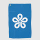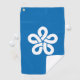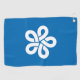 Golf Towel mit einem Design mit der Fahne der Präfektur Fukuoka in Japan (福 岡, Fukuoka-ken), eine blaue Flagge mit einem weißen Symbol