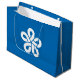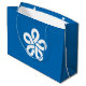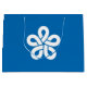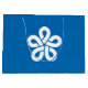 Geschenktasche mit einem Design mit der Fahne der Präfektur Fukuoka in Japan (福 岡, Fukuoka-ken), eine blaue Flagge mit einem weißen Symbol