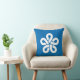 Throww Kissen mit einem Design mit der Fahne der Präfektur Fukuoka in Japan (福 岡, Fukuoka-ken), einer blauen Flagge mit einem weißen Symbol