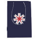 Geschenktasche mit einem Design mit der Fahne der japanischen Hokkaido-Präfektur (北 海, Hokkaidō), eine blaue Flagge mit einem weißen und roten Symbol