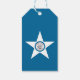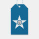 Preis-Tag mit der Flagge von Houston, Texas; blaue Flagge mit Siegel von Houston in einem weißen Stern, mit einer Abbildung eines Zuges