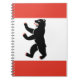 Notebook mit Berliner Flagge, Staatsflagge mit horizontalen Streifen in Rot und Weiß, mit Abbildung eines schwarzen Bären in der Mitte
