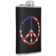 Das klassische Friedenszeichen überragt über ein Bild der US-Flagge, das auf der Wahl der Hintergrundfarbe steht.
