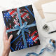 Explosionen ähneln dem roten, weißen und blauen Winkel der amerikanischen Fahne über einem schwarzen Hintergrund, der um jedes Feuerwerk ein reichhaltiges blaues Gitter aufweist. Patrioten, Leute mit Geburtstagen im Juli, Veteranen, Soldaten und andere Patrioten werden dieses schöne Papier besonders schätzen.