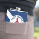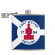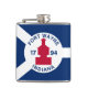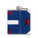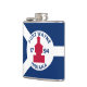 Vinyl umhüllte Flasche mit der Flagge der Stadt Fort Wayne, Indiana; blau-weiße Flagge und mit roten Blockhaus in der Mitte und drei Illustrationen im blauen Feld - Abbildung des Kopfes der Indianer, Französisch-Fleur-de-lys und britischer Löwe
