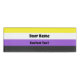 Name-Tag mit dem Flag für nicht binäre Stolz. Gelbe, weiße, lila und schwarze Markierung der nicht binären Strichbewegung mit anpassbarer Textvorlage für Ihren Namen und benutzerdefinierten Text