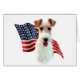 USA! Amerika! Schreib deinen Stolz mit dieser phantastischen Fahne Patriotischer Hintergrund mit diesem HUNDEZUCHTVERBAND Hund züchten Wire Fox Terrier in der vordersten Front. Zeigen Sie Ihren Stolz mit diesem Design auf einem T - Shirt, Tasse, und vieles mehr!