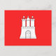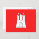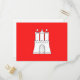 Einladung Postkarte mit Hamburger Flagge, rote Flagge mit Abbildung eines weißen Schlosses mit drei Türmen