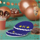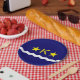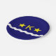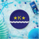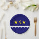 Papiertafel mit Design mit der Flagge Kinshasas, Hauptstadt Stadt der Demokratischen Republik Kongo, blaue Flagge mit Weißwelle, zwei goldene Sterne und Buchstabe "K" in der Mitte