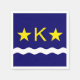 Papierserviette mit Design mit Fahne von Kinshasa, Hauptstadt Stadt der Demokratischen Republik Kongo, blaue Flagge mit Weißwelle, zwei goldene Sterne und Buchstabe "K" in der Mitte