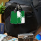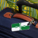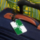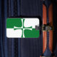 Gepäckanhänger mit einer Fahne des historischen Landkreises von Kirkcudbright in Schottland, Großbritannien; grün-weiße Fahne mit Kreuz von Cuthbert
