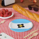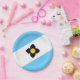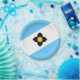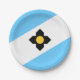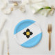 Papiertafel mit der Flagge von Madison, Wisconsin; hellblaue und weiße Flagge mit schwarzem Kreuz und gelben Kreis in der Mitte