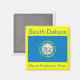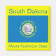 Ein authentisches Bild der Fahne des South Dakota Set zwischen dem Namen des Staat und dem Spitznamen über einem farbigen Hintergrund.