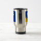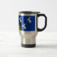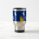 Reise-Cup mit Design mit einer Fahne des historischen Landkreises von Merioneth, in Wales, Großbritannien; blaue Azurflagge mit drei weißen Ziegen und gelber Sonne