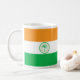Tasse mit der Fahne der Stadt Miami, Florida; Fahne mit drei waagerechten orangefarbenen, weißen und grünen Streifen mit Emblem mit einer Abbildung einer Palme in der Mitte