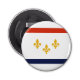 Button Flaschenöffner mit Fahne der Stadt New Orleans, Louisiana; weiße Flagge mit roten und blauen Streifen und drei goldenen Flöhe-de-lys