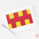 Sticker mit Design mit einer Fahne des historischen Landkreises von Northumberland, England, Großbritannien; rot-gelbe Fahne auf der Grundlage des St. Oswald Banners