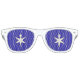 Sunglasses with a design with the flag of Chiba Prefecture in Japan (千葉県, Chiba-ken), a blue flag with a white and yellow symbol