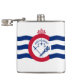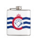 Vinyl wrapped flask with flag of city of Cincinnati, Ohio; white flag with three blue waves with red “C” in the center