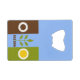 Bottle Opener with flag of Fresno, California; flag with three vertical bands of brown, blue and green, with stylized illustrations of cog, plant and sun