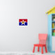 Poster with flag of city of Dallas, Texas; flag with red and blue horizontal bands with seal of the city inside of a white star in the center