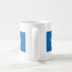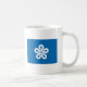 A mug with a design with the flag of Fukuoka Prefecture in Japan (福岡県 , Fukuoka-ken), a blue flag with a white symbol