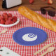 Paper Plate with a design with the flag of Osaka Prefecture in Japan (大阪府, Ōsaka-fu), a blue flag with a white symbol