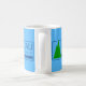 Mug with flag of city of Juneau, Alaska; blue flag with stylized illustration of trees