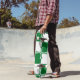 Skateboard with design with a flag of historic county of Kirkcudbrightshire, in Scotland, Great Britain; green and white flag with cross of Cuthbert