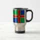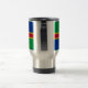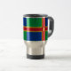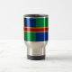 Travel Cup with design with a flag of historic county of Lincolnshire, in England, Great Britain; green and blue flag with red and yellow cross and a Fleur-de-Lis in the centre