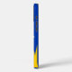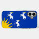 iPhone 14 Fall mit Design mit einer Fahne des historischen Landkreises von Merioneth, in Wales, Großbritannien; blaue Azurflagge mit drei weißen Ziegen und gelbe Sonne