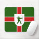 Mousepad with design with a flag of historic county of Nottinghamshire, in England, Great Britain; green flag with a red cross, with inescutcheon with illustration of Robin Hood in the centre