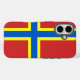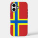 iPhone 16 Fall mit Design mit einer Fahne des historischen Landkreises von Orkney, in Schottland, Großbritannien; rote Fahne mit blauem und gelbem nordischem Kreuz