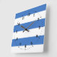 Clock with design with flag of Tallinn, capital city of Estonia; white and blue striped flag