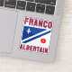 Showcase your cultural pride with this Flag of the Franco-Albertains Sticker, a vibrant tribute to the French-speaking community of Alberta, Canada. Adopted in 1982, this flag is rich in symbolism: the blue field represents the vast Alberta sky, the white symbolizes the snowy peaks of the Canadian Rockies, and the two intertwined wild roses—the provincial flower—signify the unity and vitality of the Francophone community. The striking diagonal design reflects the dynamic spirit of a community that is both rooted in history and moving toward the future.