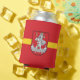 Can Cooler with design with flag of Vilnius, capital city of Lithuania; red flag with yellow stripe and coats of arms with two golden lions holding a shield in the center