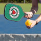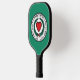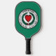 Pickleball Paddle with flag of city of Worcester, Massachusetts; green flag with white emblem with red heart in the center