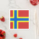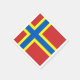 Papierserviette mit Design mit einer Fahne des historischen Landkreises von Orkney, in Schottland, Großbritannien; rote Fahne mit blauem und gelbem Nordic-Kreuz