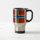Reise-Cup mit Design mit einer Fahne des historischen Landkreises von Orkney, in Schottland, Großbritannien; rote Fahne mit blauem und gelbem nordischem Kreuz
